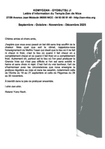 Programme d’activités GyobutsuJi 2025 Sept à Dec Dojo Zen 2025-08-12T08:03:23+01:00 Partagez cet article, choisissez votre réseau ! FacebookTwitterLinkedinRedditTumblrGoogle+PinterestVkEmail